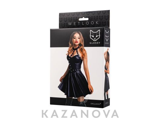 С открытой спиной. Сделано из ткани wetlook. Притягательный блеск.