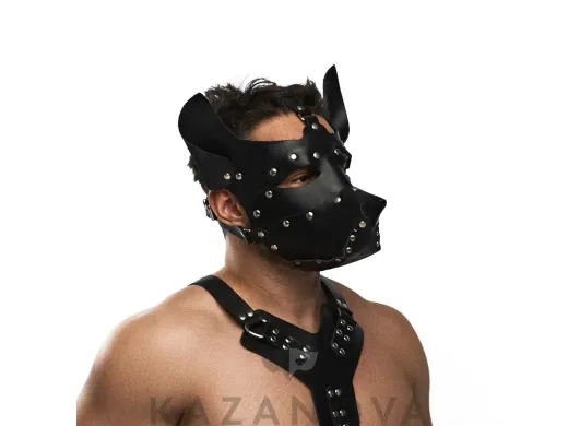 Маска кожаная чёрная проклепанная 1102