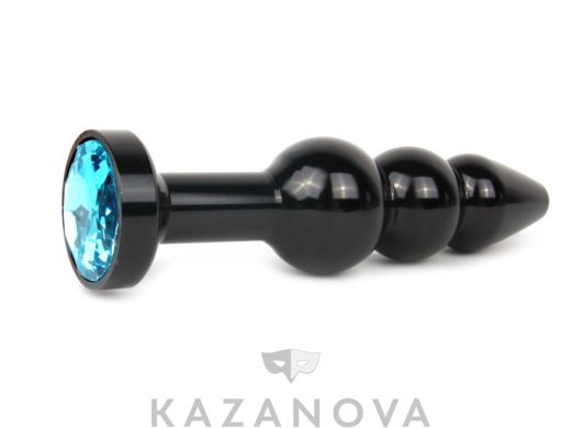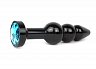 Анальная втулка Black Plug рельефная черная c голубым кристаллом