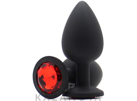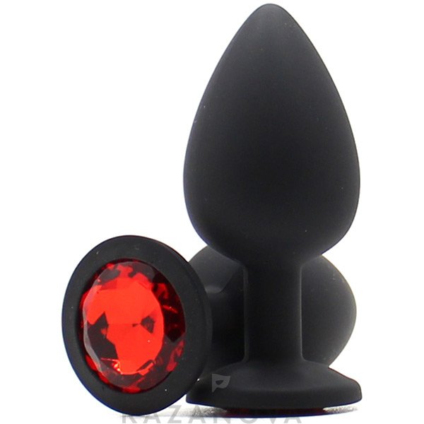 Анальная втулка большая из медицинского силикона черная с красным стразом 025