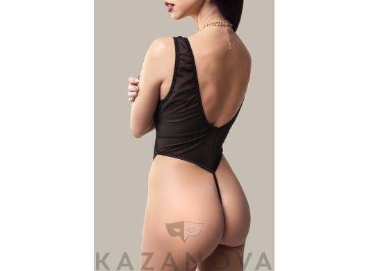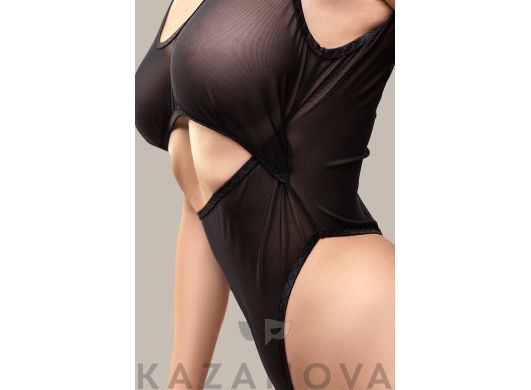 Боди плотно облегает тело подчеркивает пышную грудь и слегка её поддерживает и акцентирует внимание на талии. С доступом к интимным зонам.