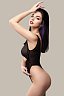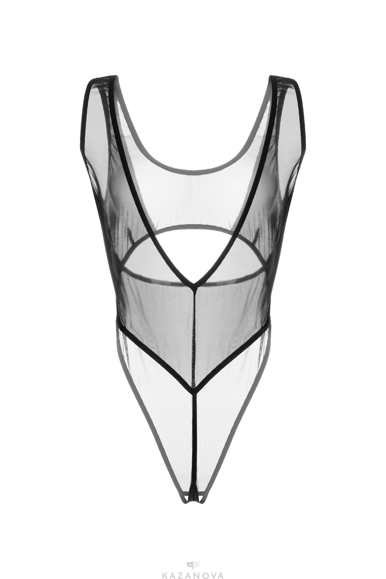 Эффектный вырез под грудью открывает чувствительную зону тела. Аккуратные вытачки и швы и создают силуэтную посадку. Дизайн боди визуально вытягивает ноги. Глубокий вырез сзади, тонкая перемычка между абсолютно открытыми ягодицами и эротический доступ подчеркивают чувственность образа.