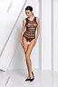 Боди из крупной сетки с вырезом на спине плотно облегает тело. Крупная полоска на груди акцентирует внимание. Боди оставляет открытыми спину и ягодицы и обеспечивает доступ к интимным зонам.