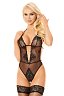 Причудливый орнамент нежного кружева на лифе и зоне бикини привносит элемент загадочности. Но откровенный вырез на груди до талии и открытый доступ к интимным местам намекает о горячих моментах удовольствия.