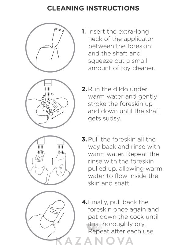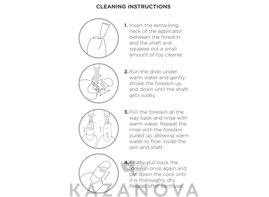 - До и после использования промойте секс-игрушку теплой водой с мылом, дайте стечь воде, просушите или промокните мягкой тканью. Не допускайте попадания влаги внутрь виброустройств. Не ошпаривайте и не кипятите изделие.