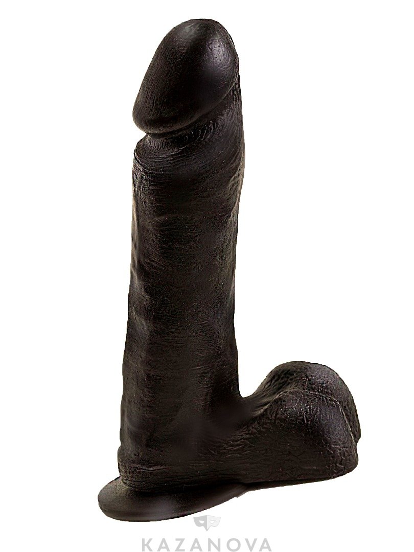 Черный фаллоимитатор LoveToy изготовлен в лучших традициях реализма: крупная головка без крайней плоти, упругий ствол с переплетением возбужденных вен и мощная мошонка возбуждают с первого взгляда.