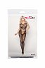 Комбинезон с вырезами на спине имитирует корсет и чулки, плотно облегает тело, подчеркивает грудь, привлекает внимание к тонкой талии и стройным бедрам.