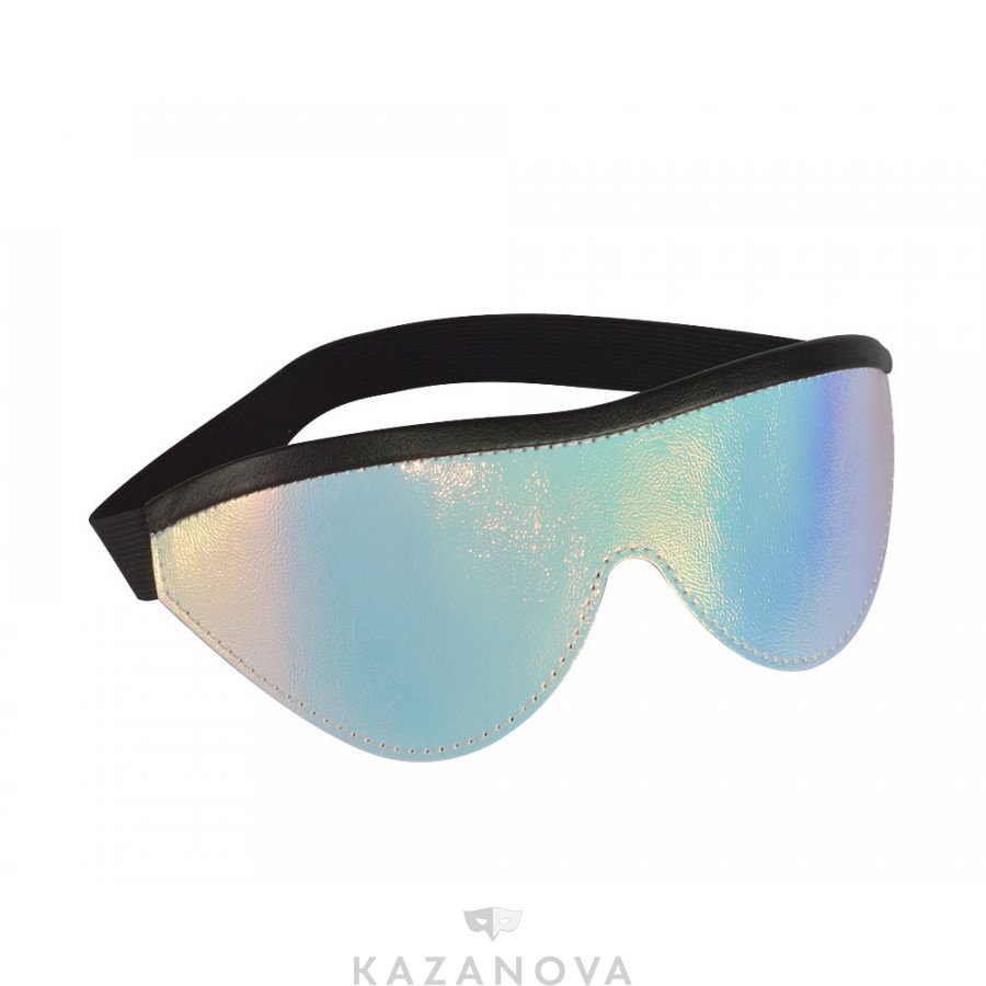 Черная маска изготовлена из натуральной кожи и декорирована серебристой полосой. Размер универсальный, аксессуар подстраивается под индивидуальные параметры. Маска не пропускает свет и идеально подходит для зрительной депривации.