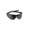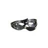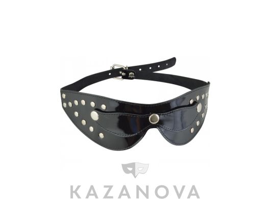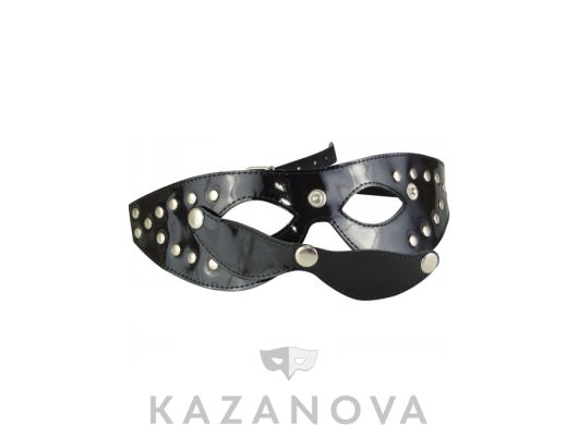 Маска изготовлена из натуральной кожи и декорирована металлическими заклепками. Размер универсальный, аксессуар подстраивается под индивидуальные параметры.