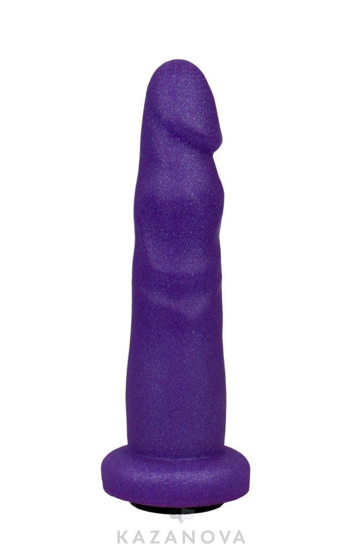 Фиолетовая насадка фиксируется на трусиках или ремнях с помощью кольца и подходит для вагинальной или анальной стимуляции.