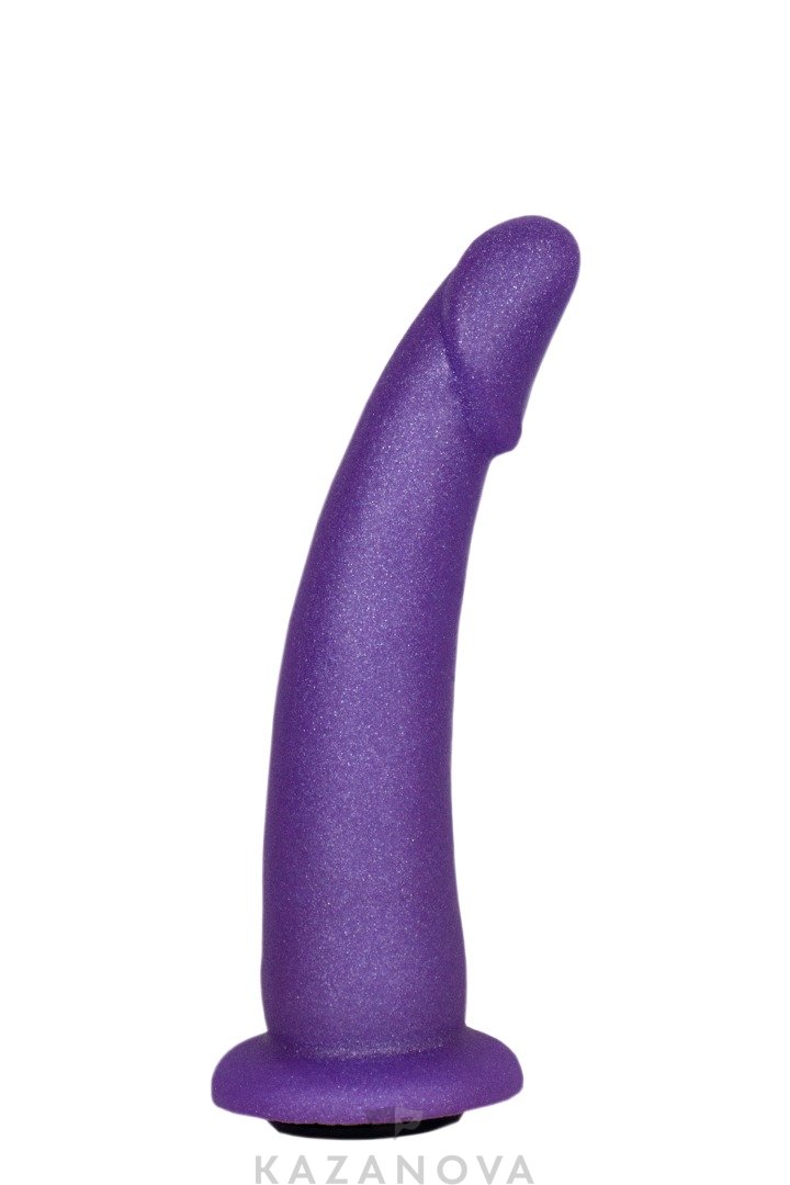 Фиолетовая насадка фиксируется на трусиках или ремнях с помощью кольца и подходит для вагинальной или анальной стимуляции.