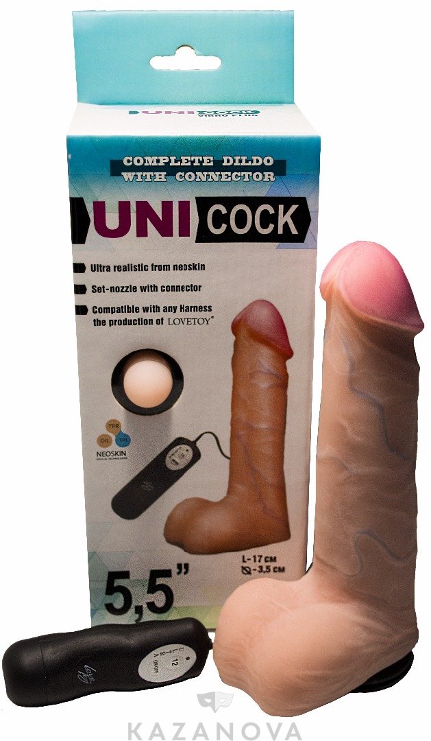 Насадка для страпона Uni Cock с вибрацией и коннектером из киберкожи реалистичная 17 см