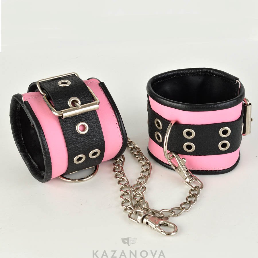 Оковы Sitabella из натуральной кожи на цепочке розово-черные