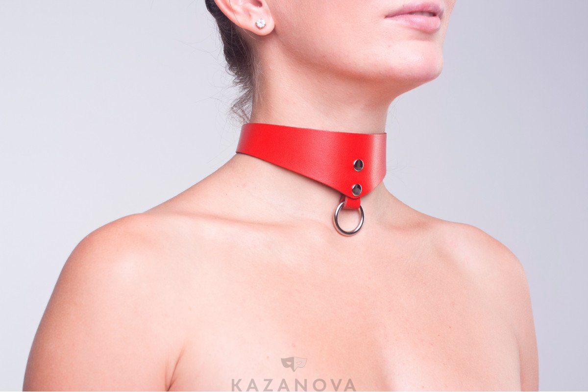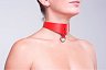 Ошейник Лунный Свет из натуральной кожи с клепками и кольцом красный