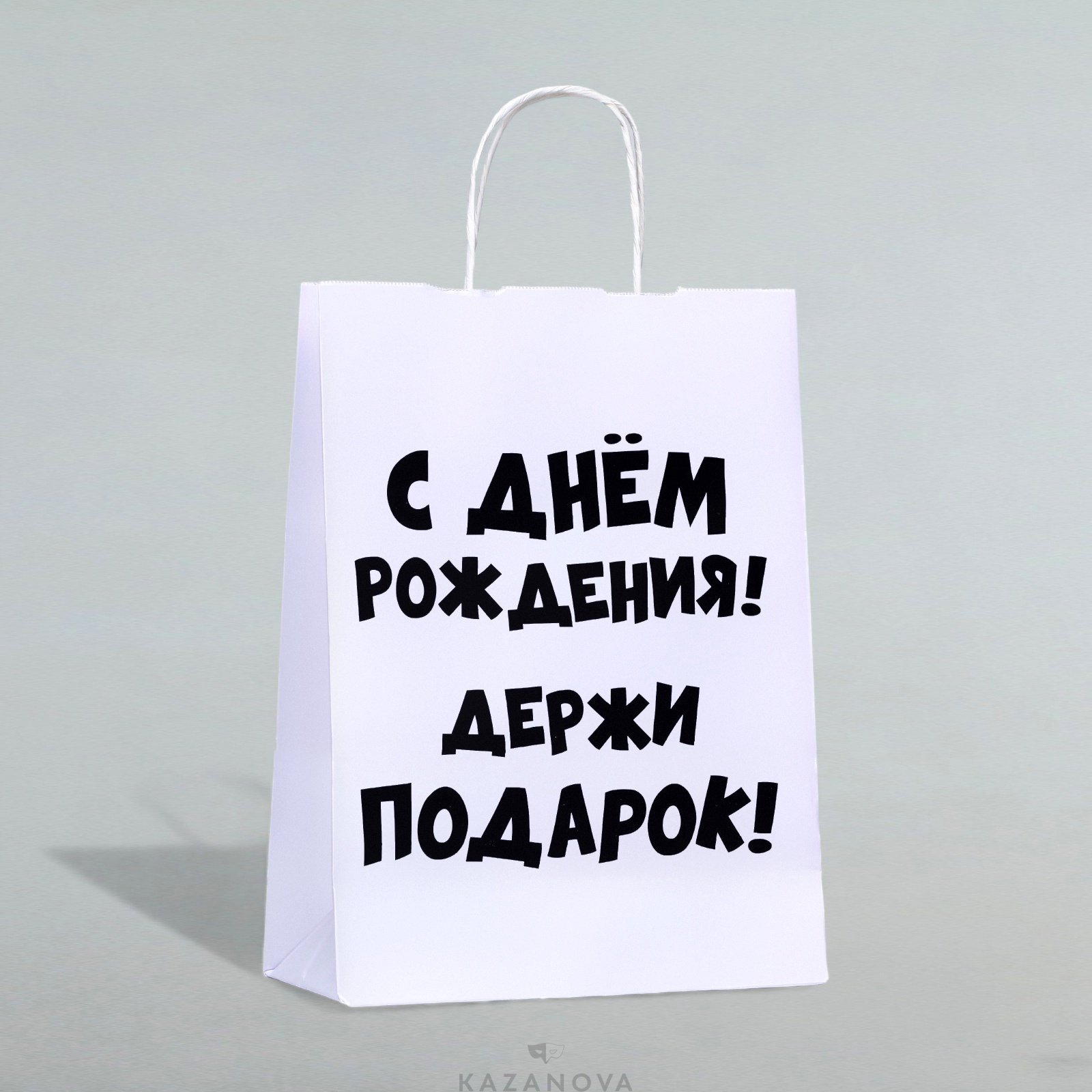 Пакет подарочный крафт «С Днем Рождения. Держи подарок» 28×24×14 см
