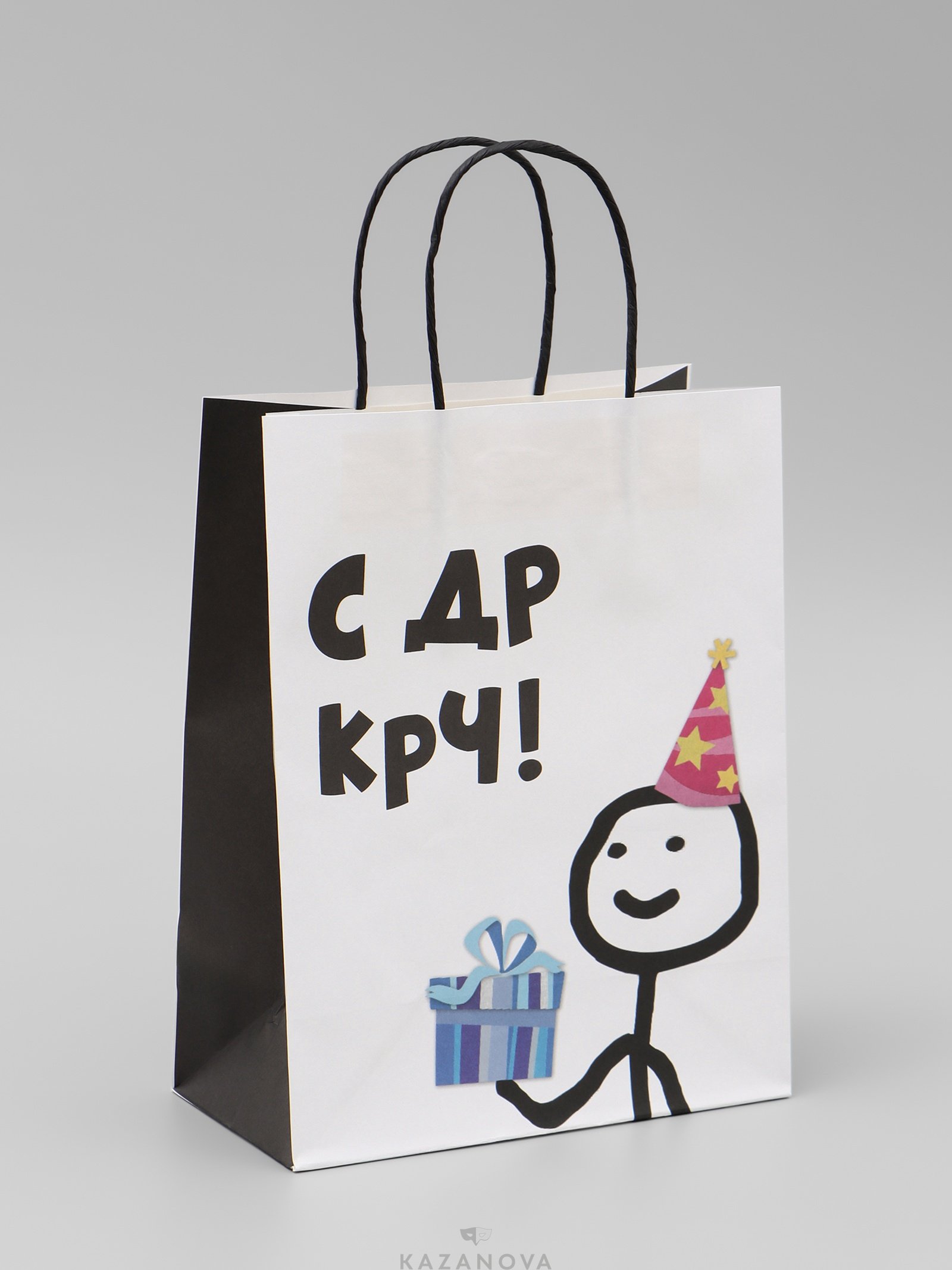 Пакет подарочный крафт «С ДР КРЧ» 21×11×27 см