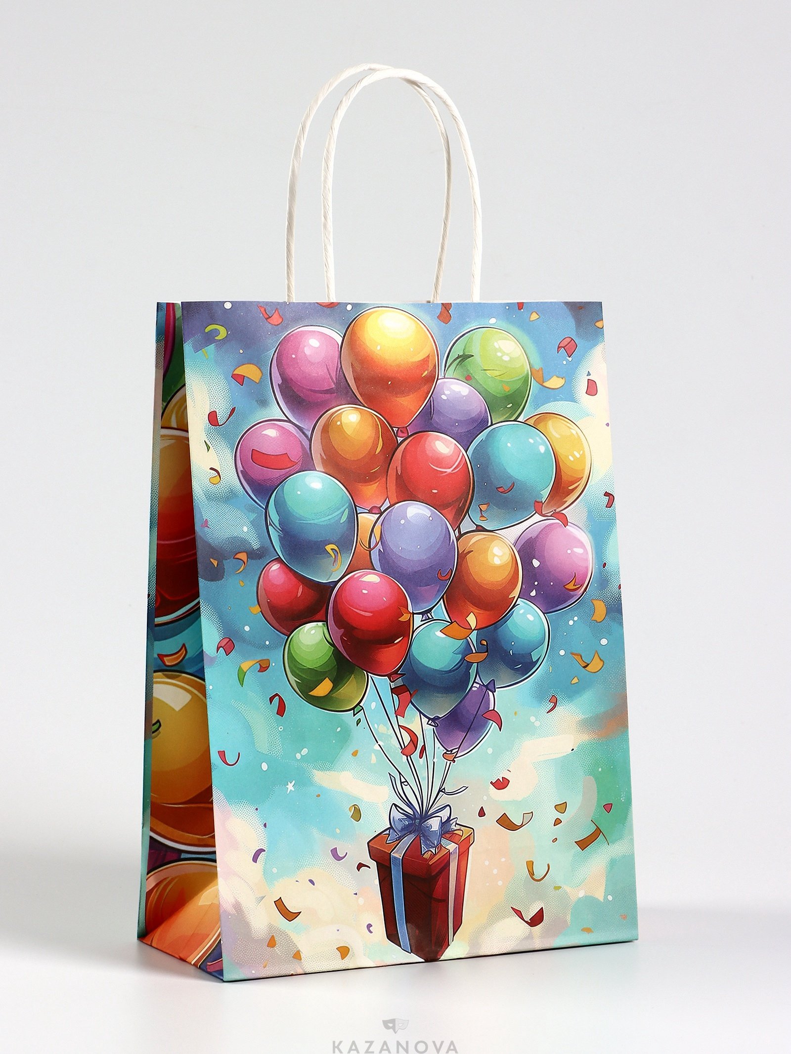 Пакет подарочный крафт «Воздушные шарики» 18×8×25 см