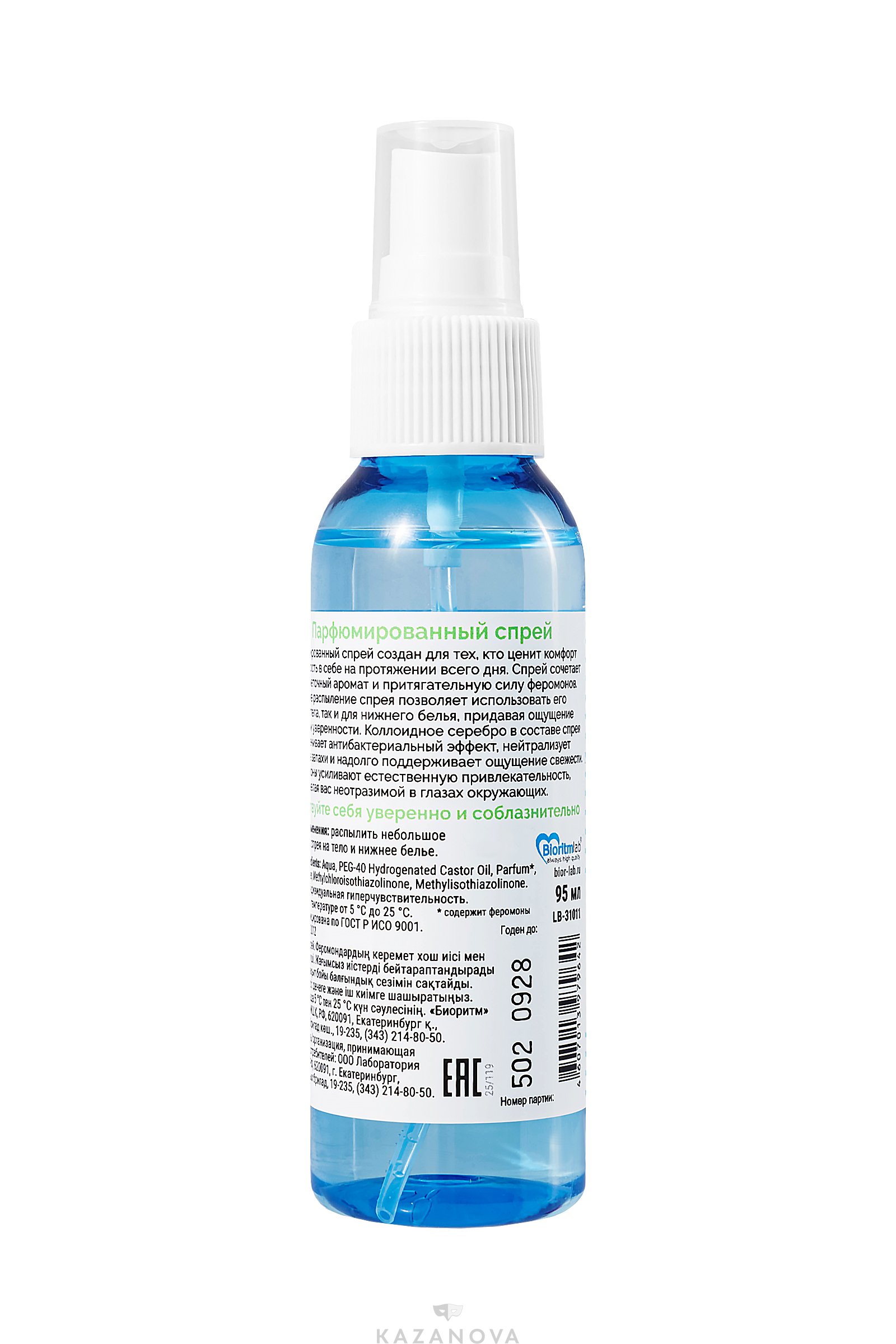 Способ применения: распылить небольшое количество спрея на тело и нижнее белье.