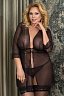 Пеньюар черного цвета сделан из полупрозрачной ткани. Выделенная зона декольте привлекает внимание к груди.