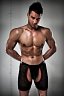 Шорты необычного покроя удачно сочетают в себе нежность материала и виниловый блеск. Красная отделка подчеркнет мужественность и сделает акценты на соблазнительных прелестях. Призывный вырез на ягодицах растопит сердце даже самой холодной красавицы.