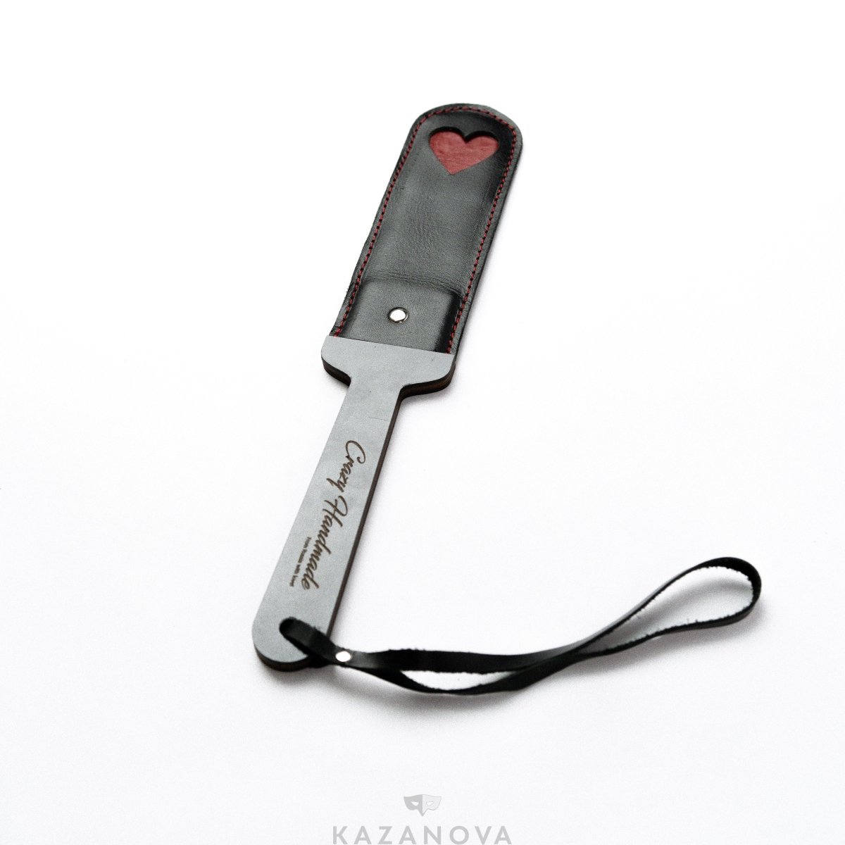 Спанк Crazy Handmade "Красное Сердце" из натуральной кожи чёрный