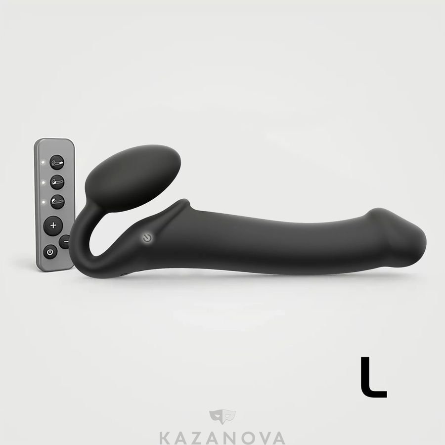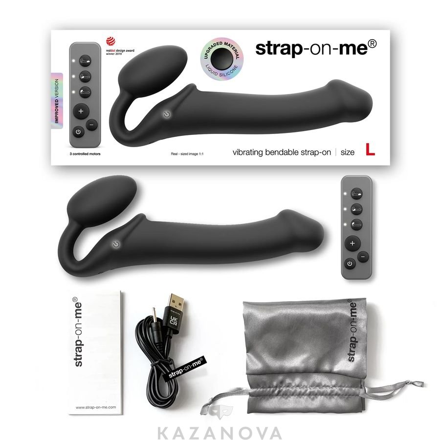 Страпон женский STRAP-ON-ME анатомический с вибрацией и пультом д/у L чёрный