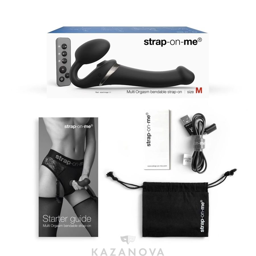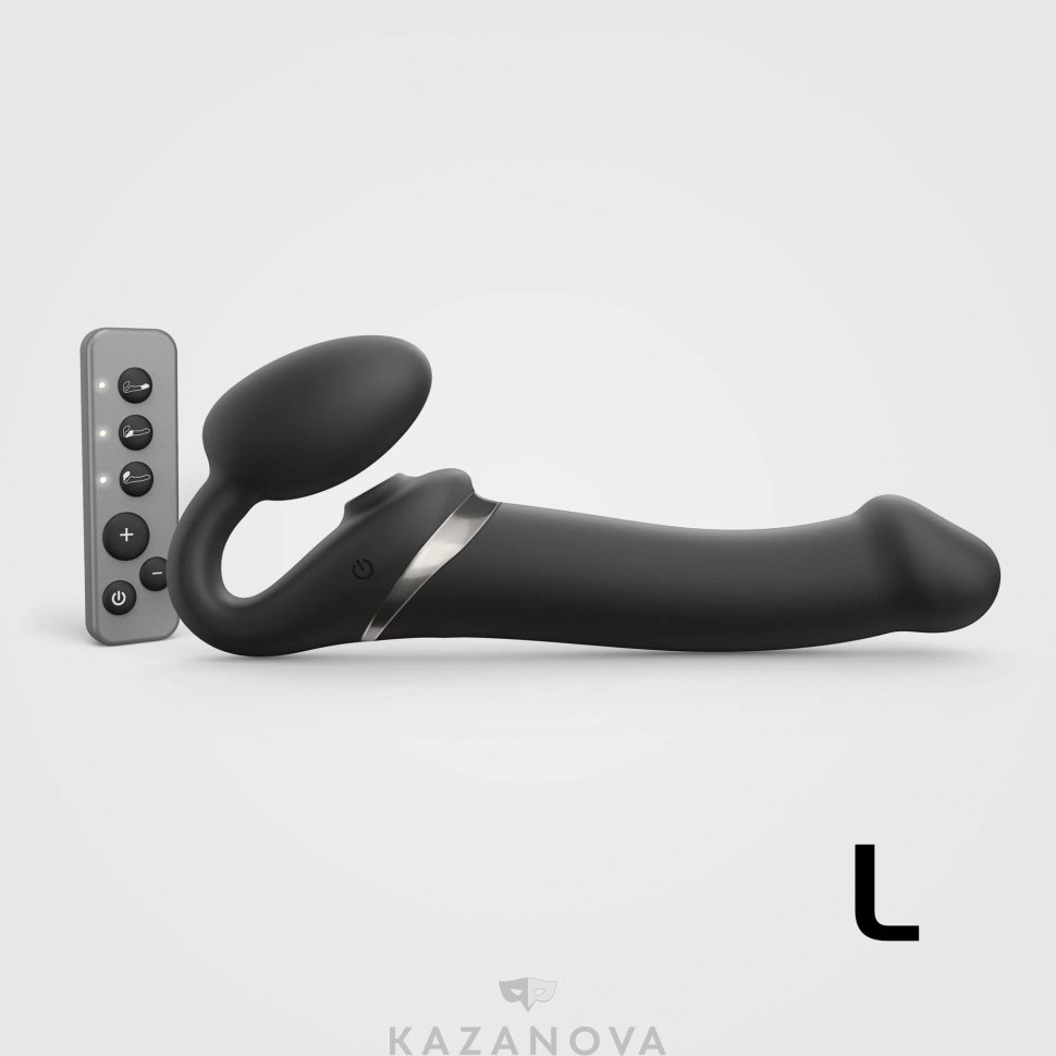 Страпон женский STRAP-ON-ME Multi Orgasm анатомический с вакуумной стимуляцией клитора L чёрный