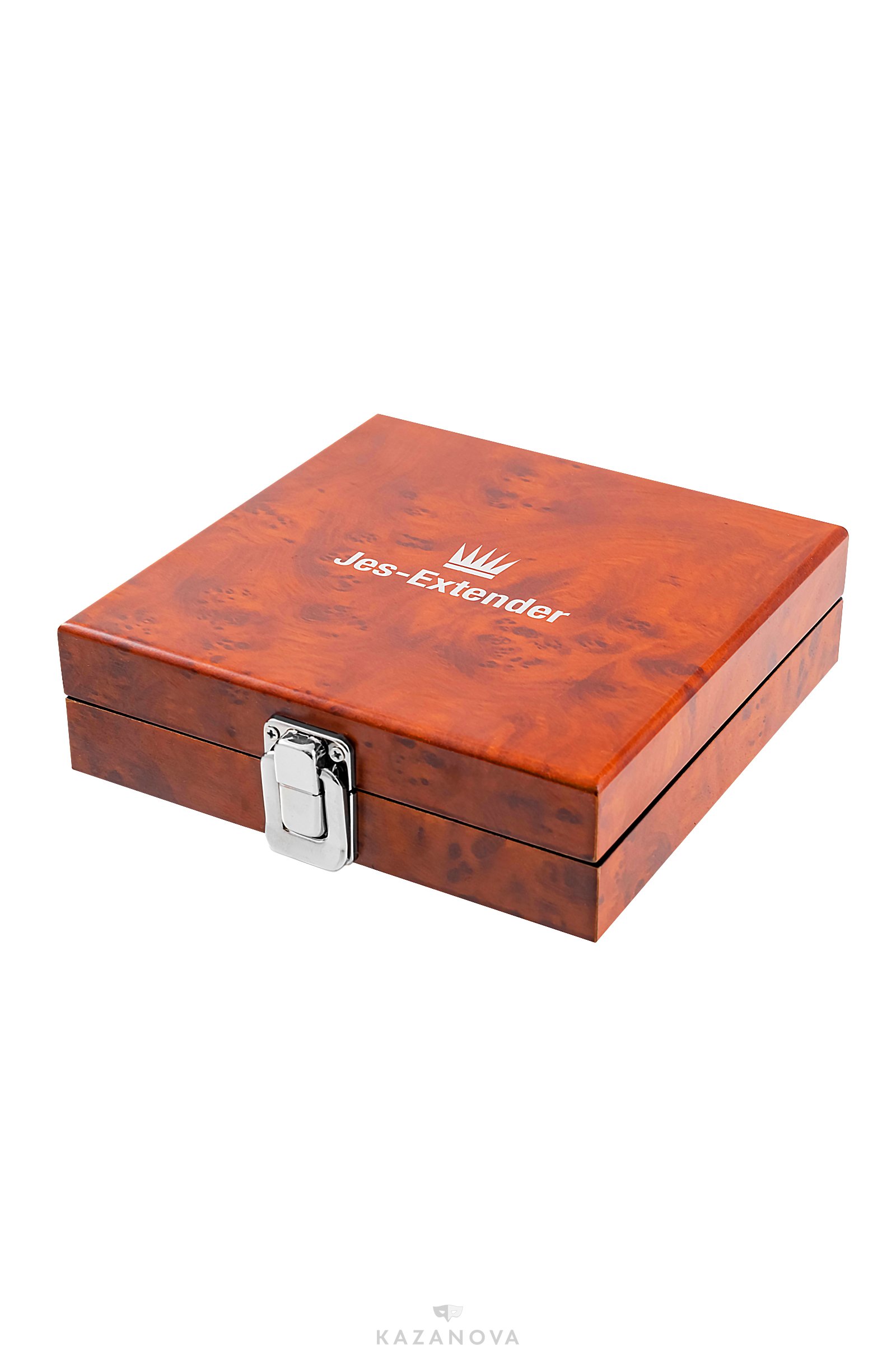Комплектация Jes-Extender Gold: золотое покрытие 24 карат, футляр из красного дерева, удлиняющие стержни (4х5 см, 2х2,5 см, 2х1,25 см), гибридное ложе Comfort (может использоваться с ремешком или жгутом), комплект ложе Velcro, фиксирующий ремешок - 1 шт, самофиксирующийся бинт Peha-Haft - 1 шт, смягчающая прокладка - 2 шт, упорное кольцо с пружинным механизмом.
