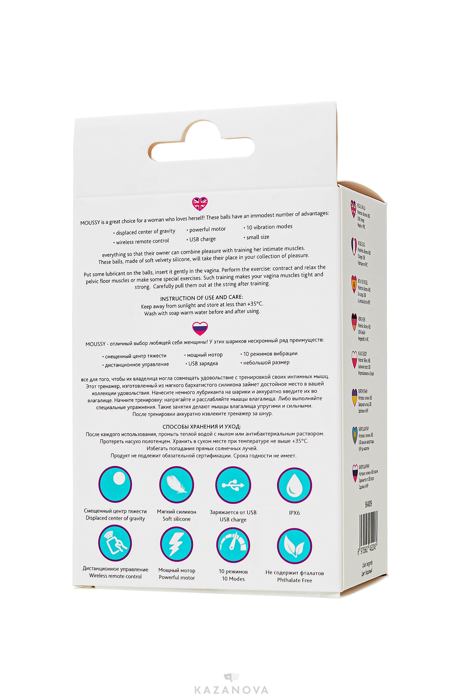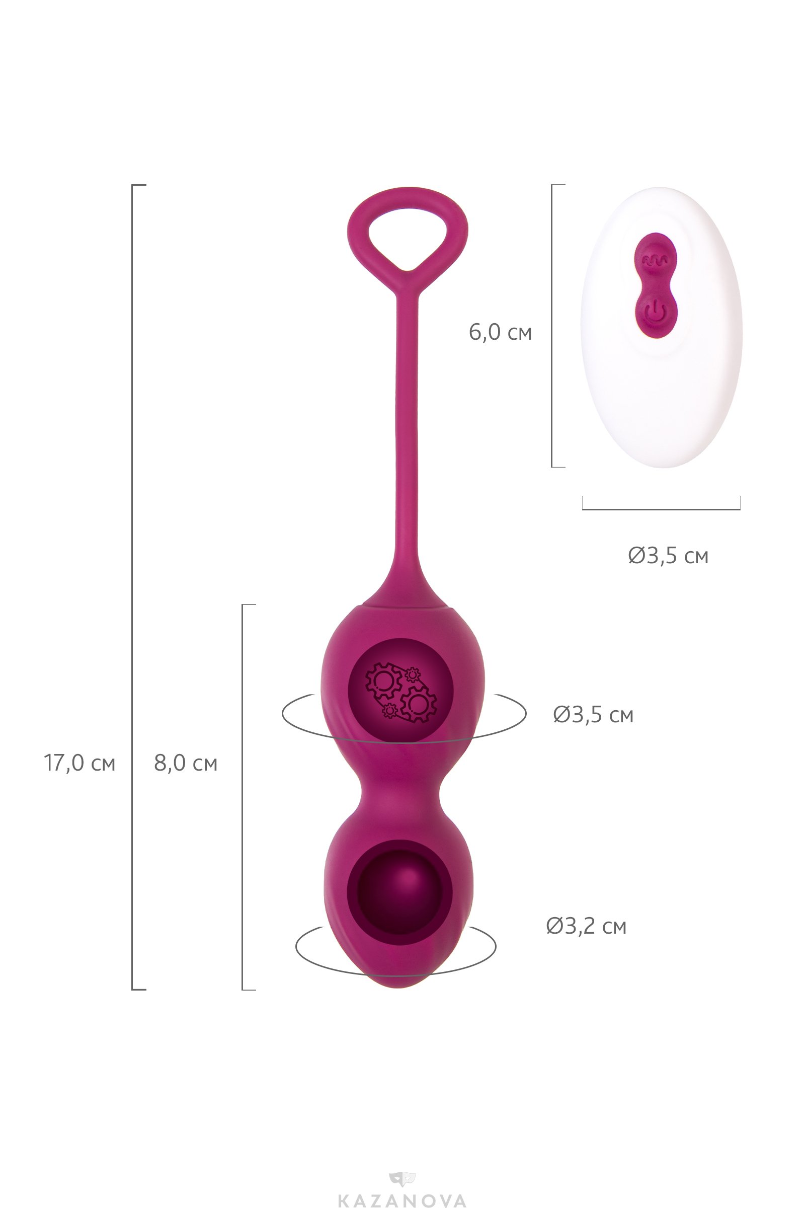 Внутри большей сферы находится шарик меньшего диаметра, который при каждом движении ударяется о стенки и заставляет их сокращаться. Внутри шариков находится мощный моторчик, вибрирующий в 10 режимах – все ритмы удобно переключать с помощью беспроводного пульта.