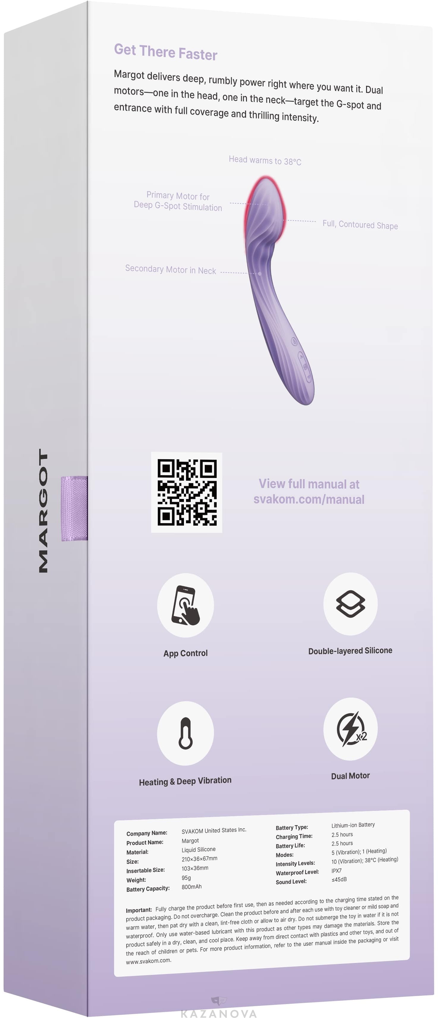 - Управление и настройка: совместимость с мобильным приложением SVAKOM для индивидуальных программ, удаленного управления, синхронизации с ритмом и совместного контроля.