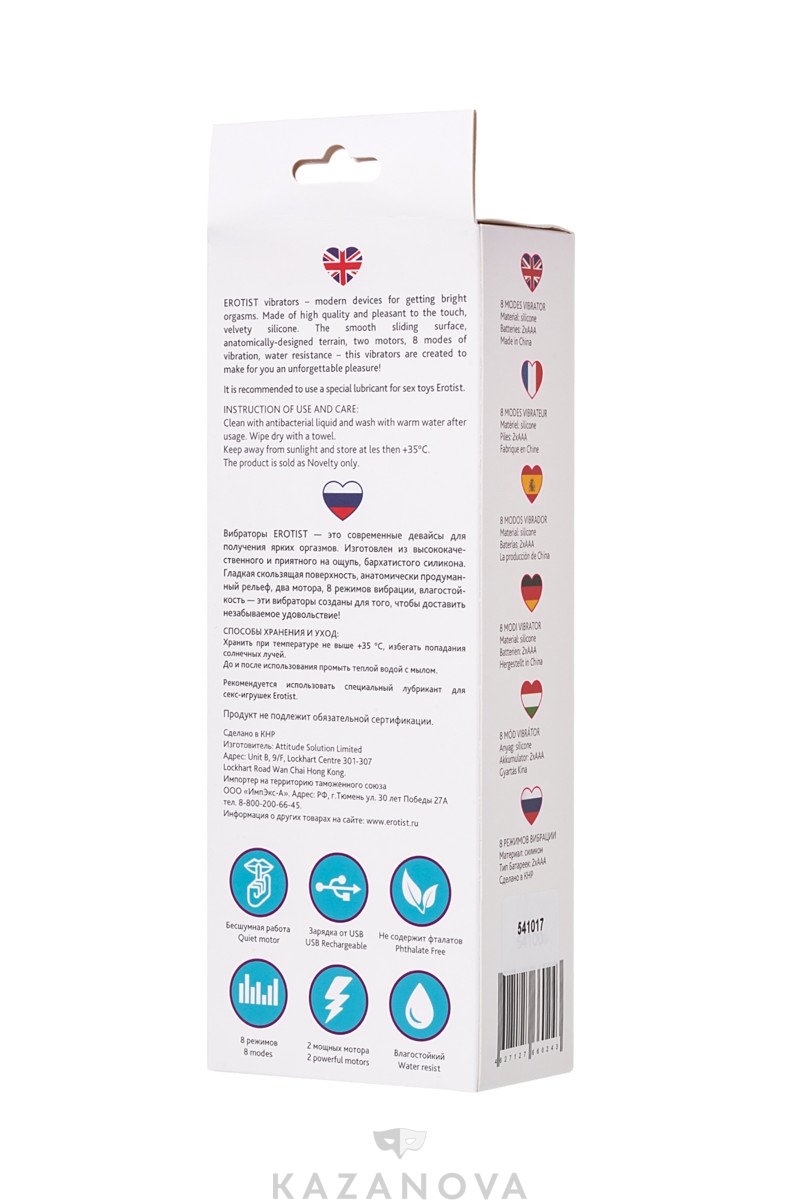 Erotist Fay готов дарить наслаждение в восьми различных режимах. Скорость и ритм вибрации удобно переключать с помощь встроенного пульта. Попробуй все режимы и выбери наиболее чувственный из них!