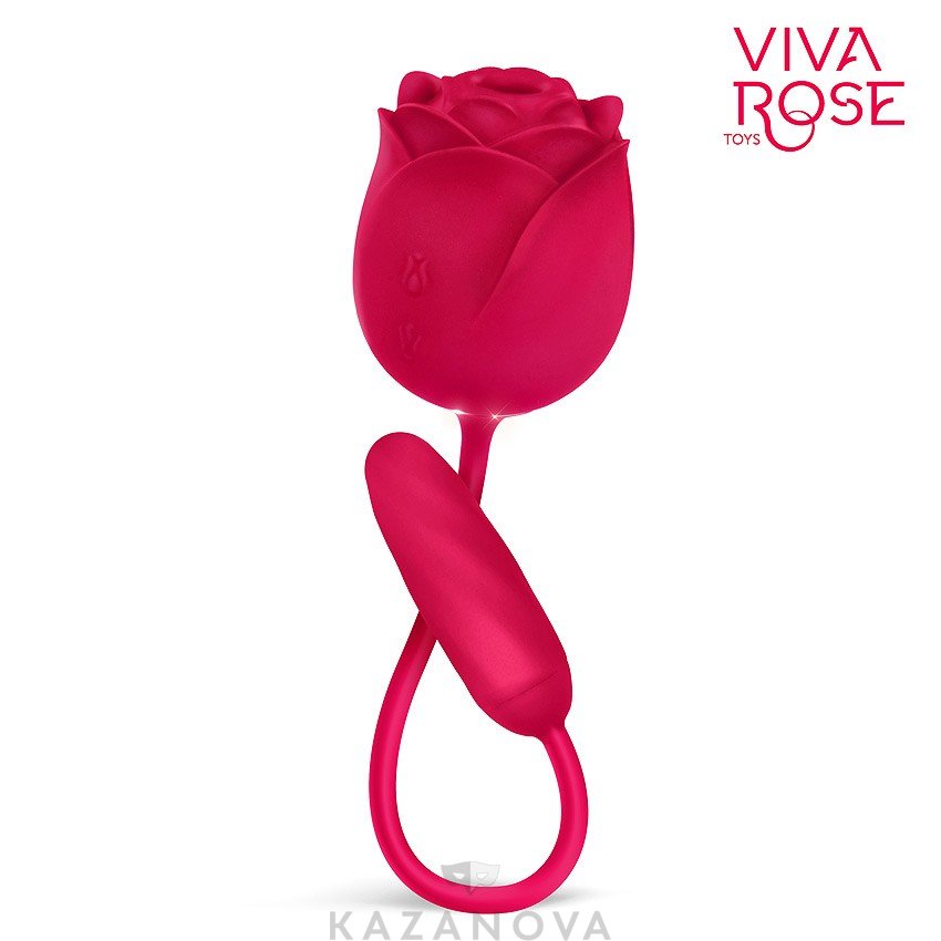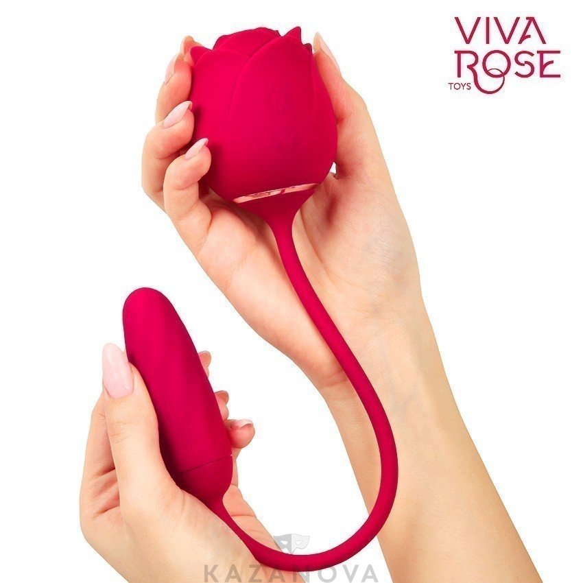 Вибростимулятор вакуумно-волновой Viva Rose в форме розы с виброяйцом 9 режимов бордовый
