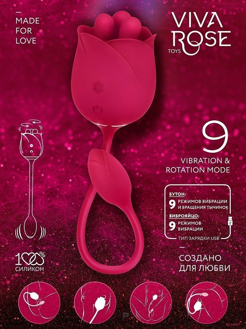 Вибростимулятор Viva Rose в форме розы с виброяйцом и вращением 9 режимов бордовый