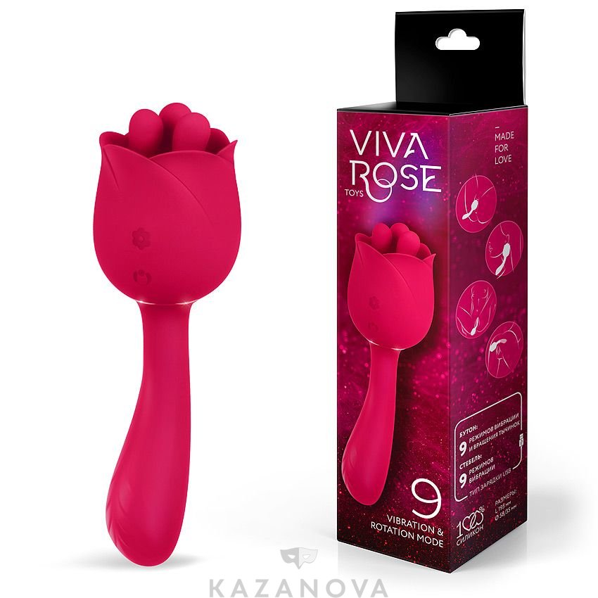 Вибростимулятор Viva Rose в форме розы с вращением 9 режимов бордовый 19,5 см