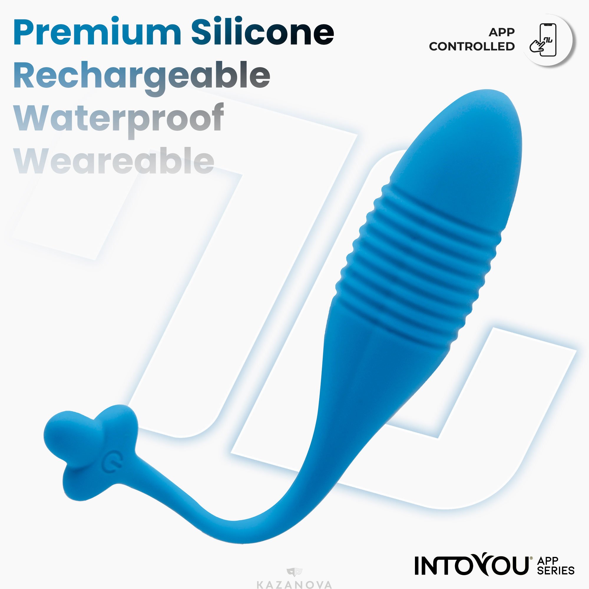 Виброяйцо интерактивное IntoYou Thrusting Egg с возвратно-поступательными движениями синее