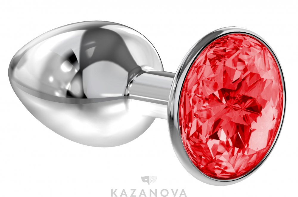 Втулка анальная Diamond металлическая малая серебристая с красным кристаллом