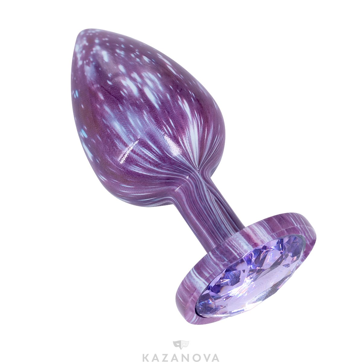 Литая анальная пробка имеет конусообразную форму и гладкую фактуру шлифованного металла которую обволакивает эмаль. Легкий и прочный алюминиевый сплав гарантирует долговечность и гигиеничность. Крупный граненый кристалл в основании имеет специальное светоотражающее покрытие дна для усиления блеска и более яркого и красочного вида.