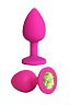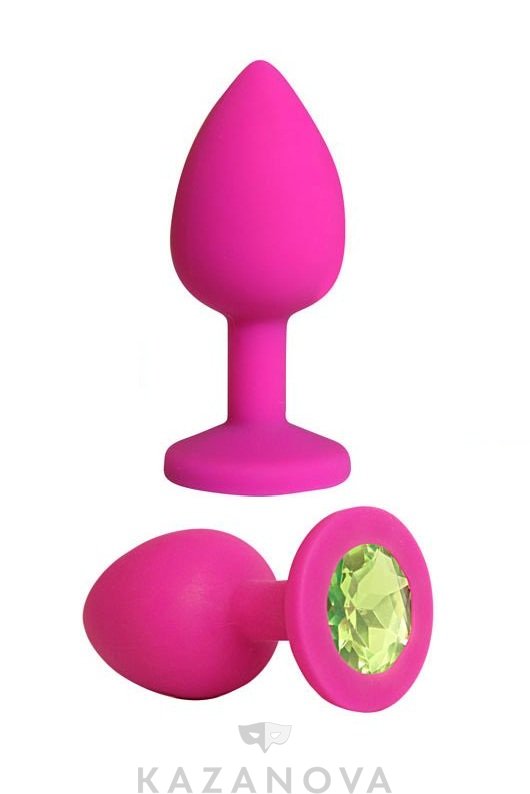 Втулка анальная Sexy Friend из силикона большая розовая со светло-зелёным стразом 290